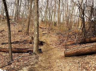 The hike's highlight for me was the endless undulating hills that filled the out-and-back trail, which spans 1.14 miles from the trailhead to Lawrence Hill Road. It took me a half hour to reach the end, at which point I hydrated and then began my retreat back to the parking lot. Interestingly, this is the only local park so far where I have seen hikers use trekking poles, which took me back to the time I hiked last spring in New Hampshire's White Mountains. Everyone used trekking poles up there, but elevation gains here are so minimal that you rarely see them used on Long Island. On a related note, I read the park is also open to snowshoeing and cross-country skiing when there are at least three inches of snowfall.